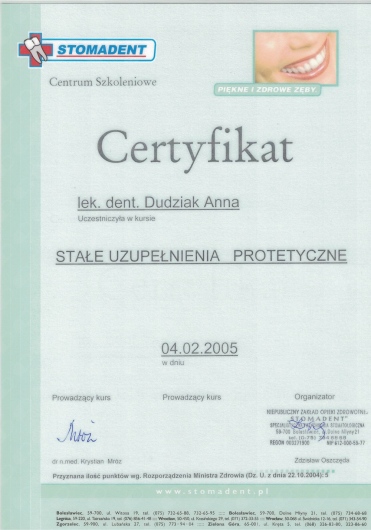Była to już kolejna proteza,lecz dopiero teraz u Pani doktor Anny Dudziak ma wykonaną bardzo dobrze, dopasowana, nie obciera dziąseł.Czuję się jak kiedyś w własnymi zębami.