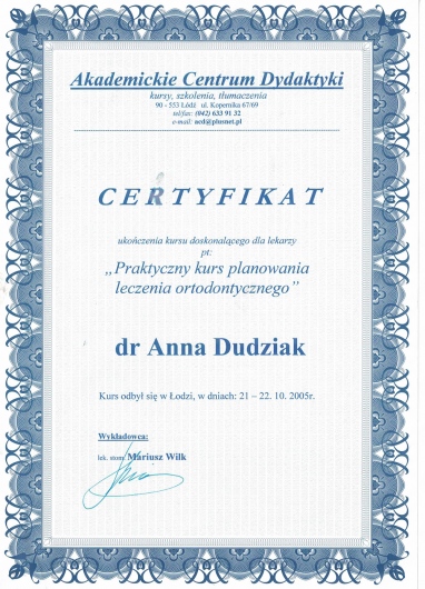 - od 13 lat zajmuje się leczeniem ortodontycznym dzieci, młodzieży i dorosłych