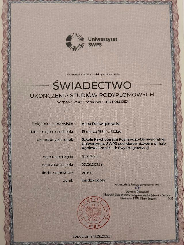 Anna Dziewiątkowska- Indywidualna Praktyka Psychologiczna