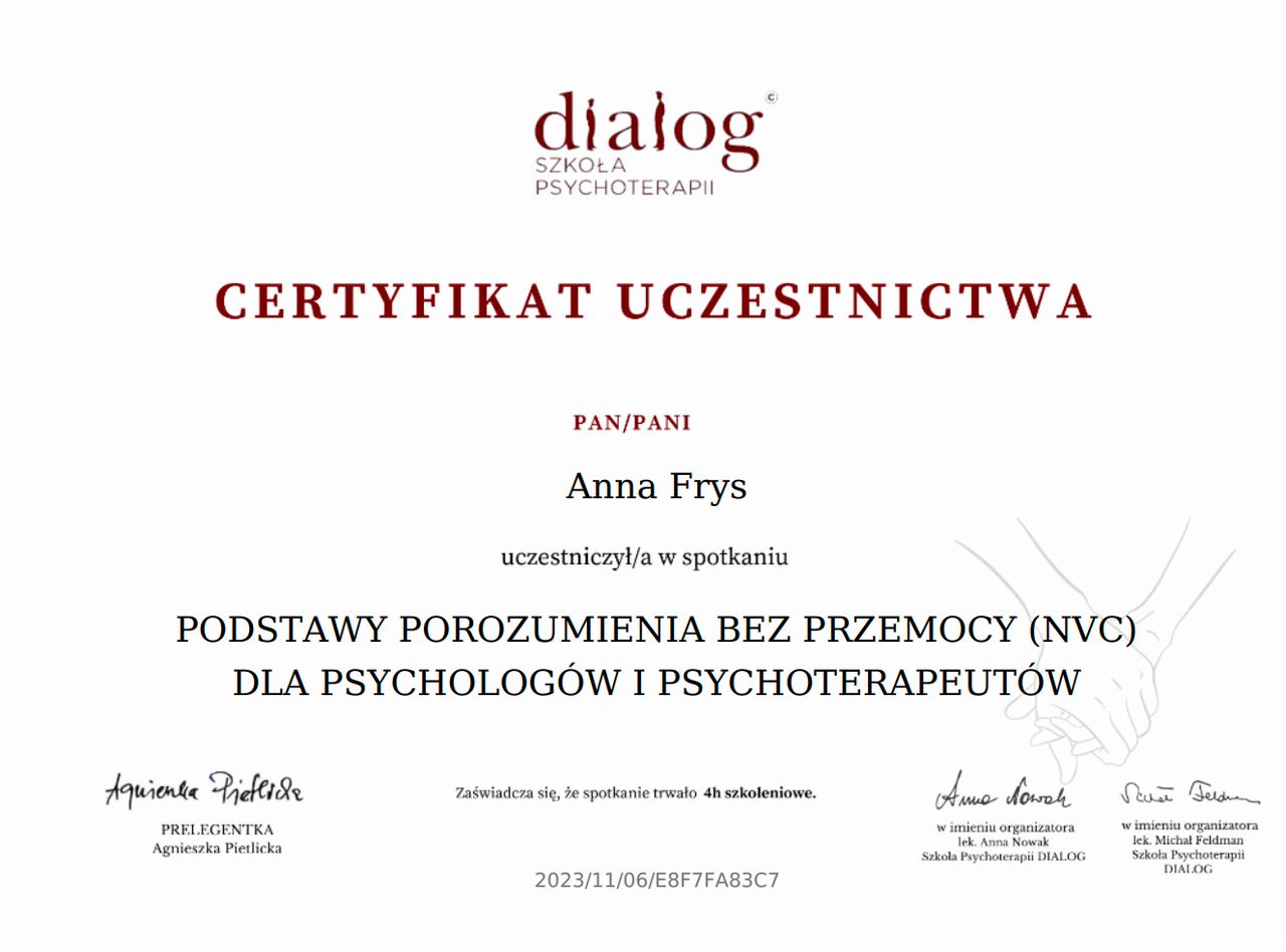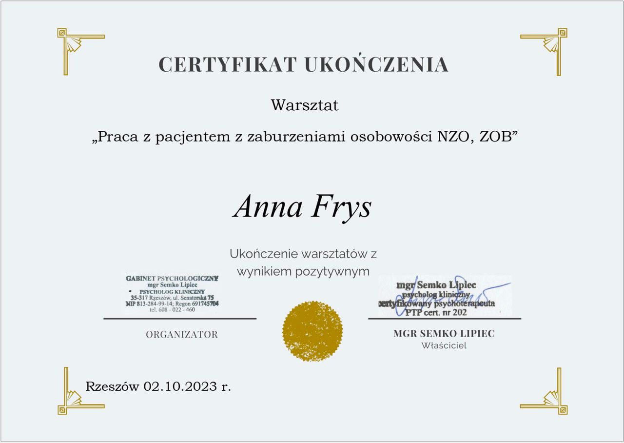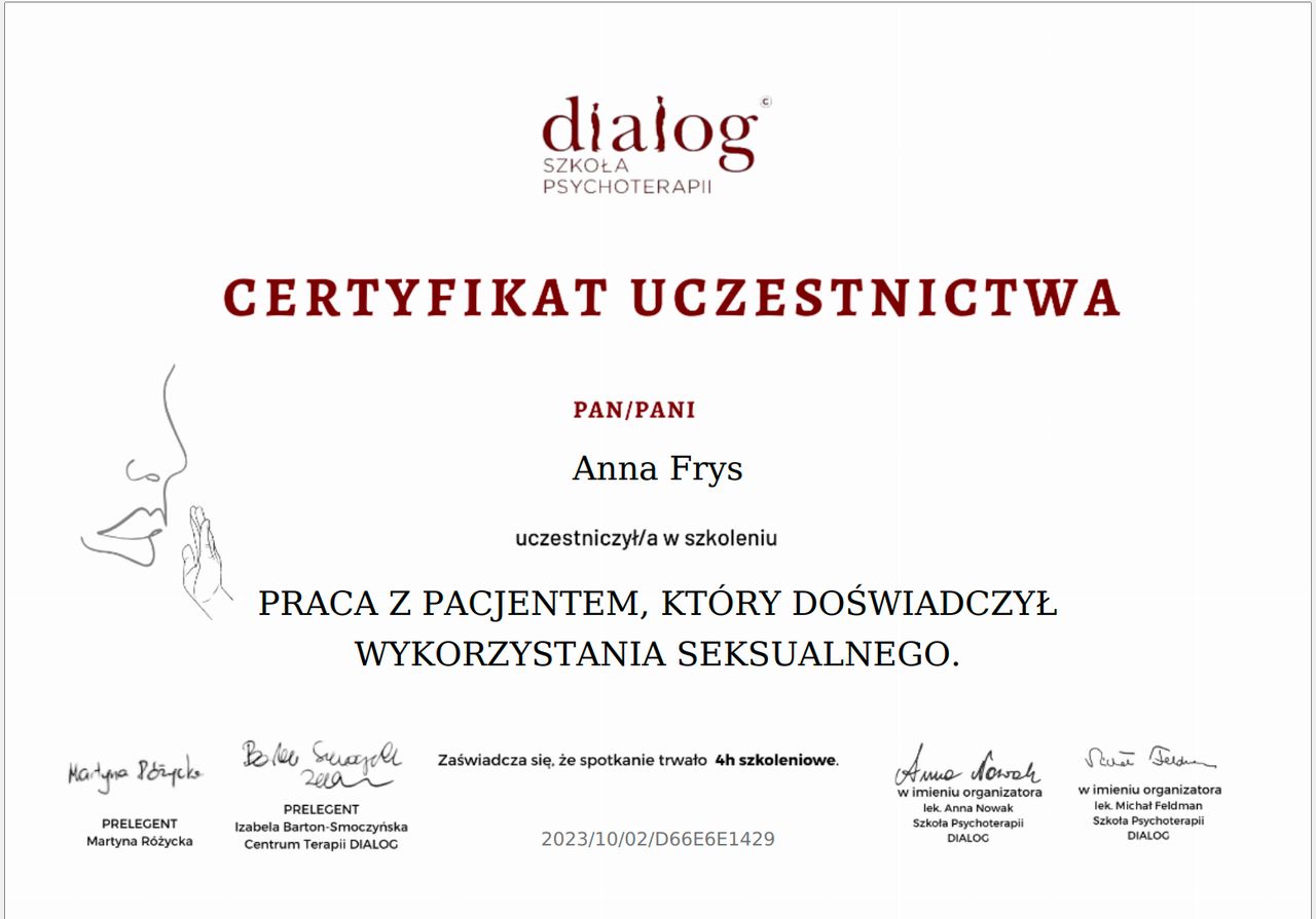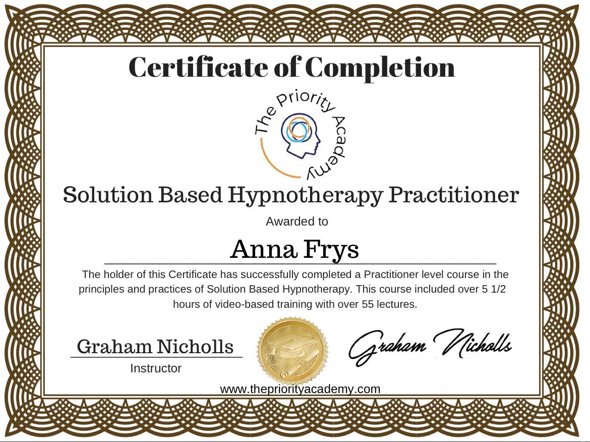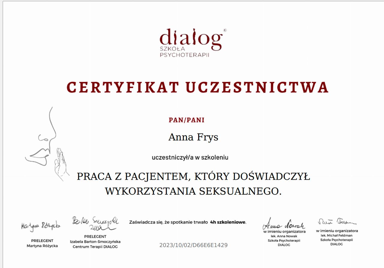 W ramach swojej praktyki zajmuję się leczeniem traum (PTT EMDR Polska, Warszawa) oraz hipnoterapia (The American Hypnosis Association, Los Angeles).
