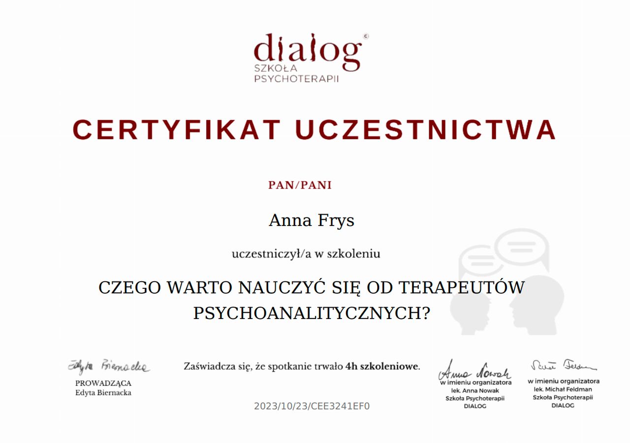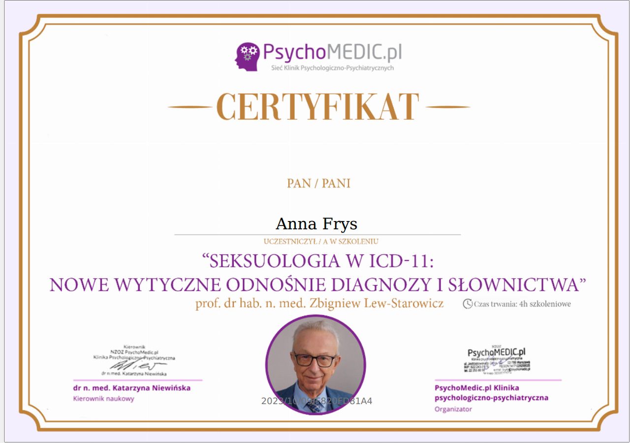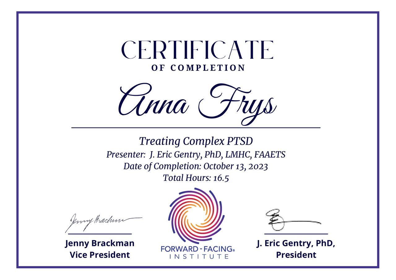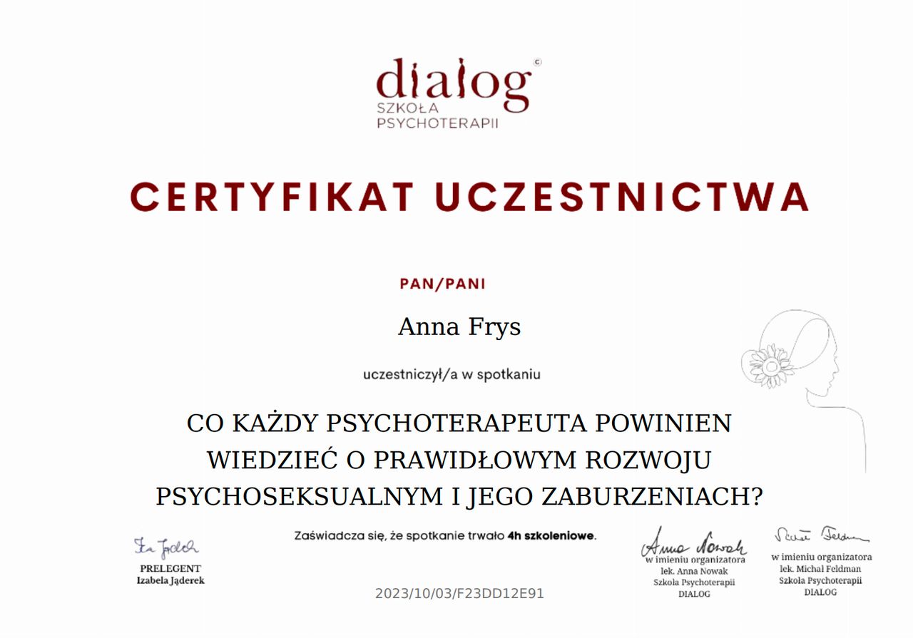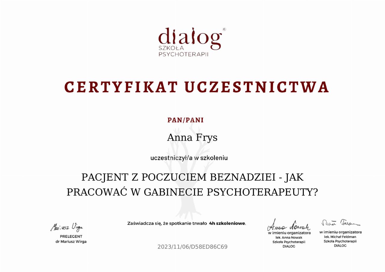 W ramach swojej praktyki zajmuję się leczeniem traum (PTT EMDR Polska, Warszawa) oraz hipnoterapia (The American Hypnosis Association, Los Angeles).