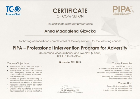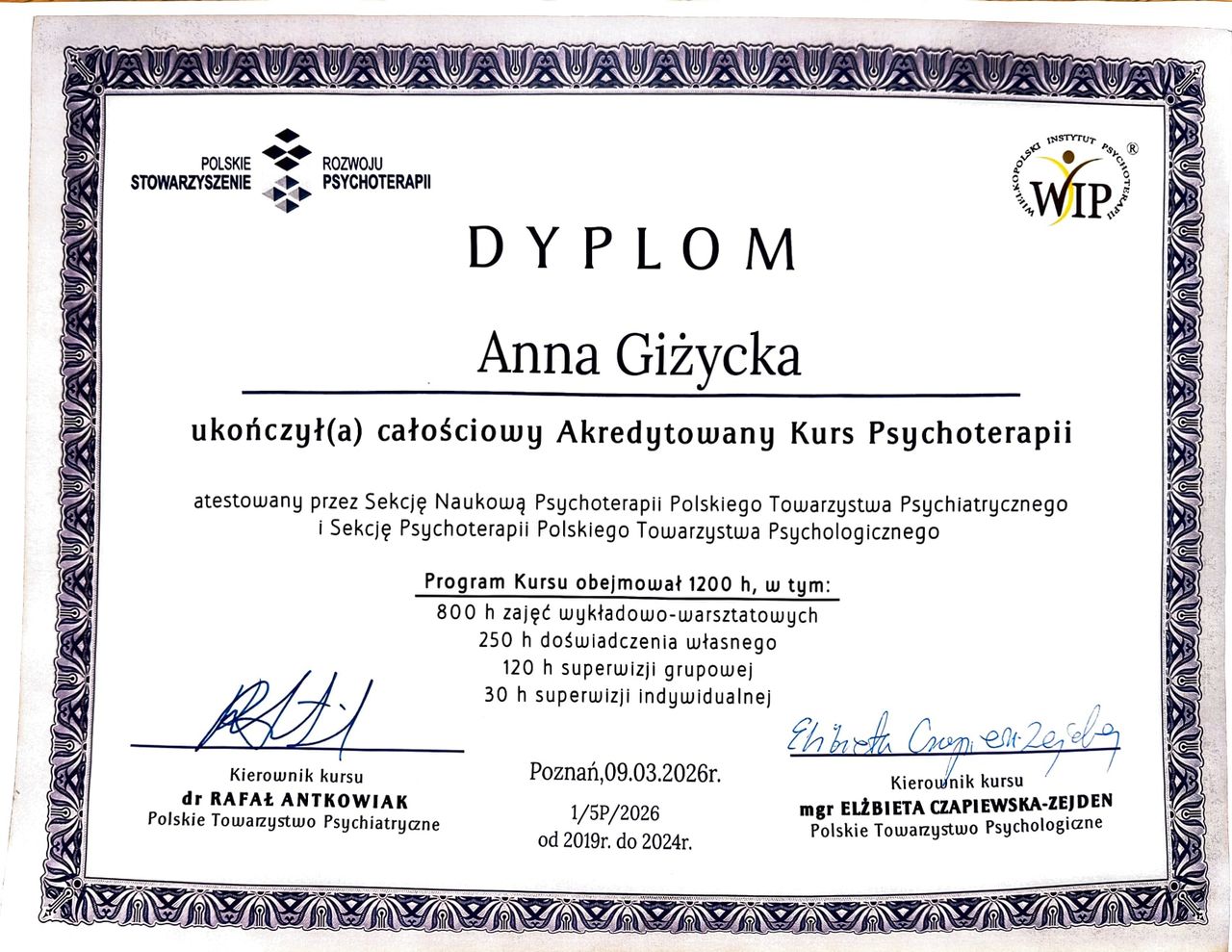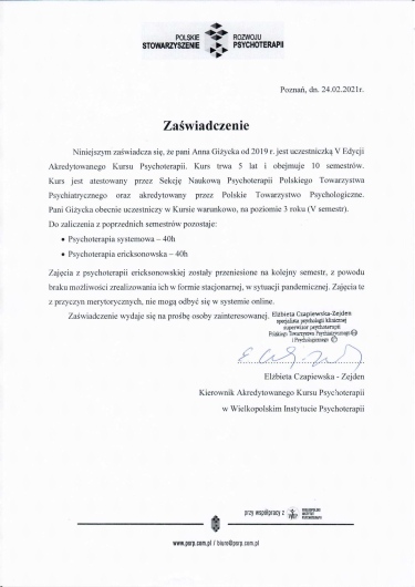 Bardzo polecam.• Anna Giżycka PSYCHOTERAPIA • psychoterapia indywidualna •