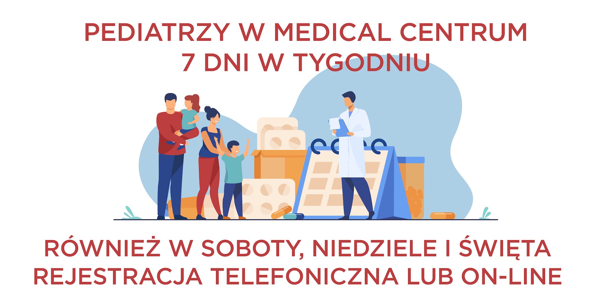 Pediatrzy w Medical Centrum- 7 dni w tygodniu, również w soboty, niedziele i święta. Rejestracja telefoniczna lub on-line.