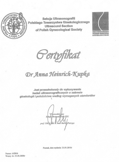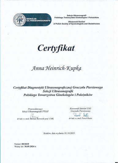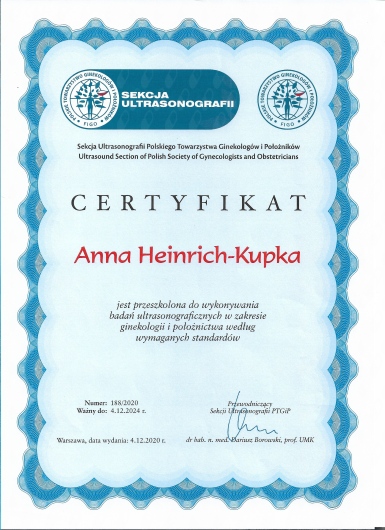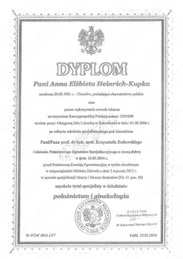 W latach 2008-2016 odbyłam szkolenie specjalizacyjne w Wojewódzkim Szpitalu Specjalistycznym Megrez w Tychach a następnie w Ślaskim Instytucie Matki i Noworodka w Chorzowie.