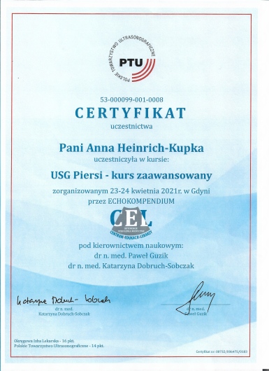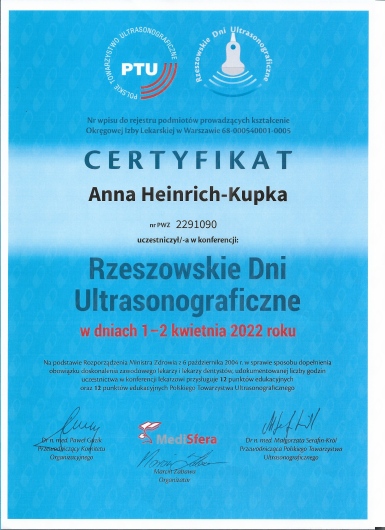 Stale pogłębiam wiedzę uczestnicząc w Konferencjach i Sympozjach w zakresie położnictwa, ginekologii, ultrasonografii i kolposkopii.
