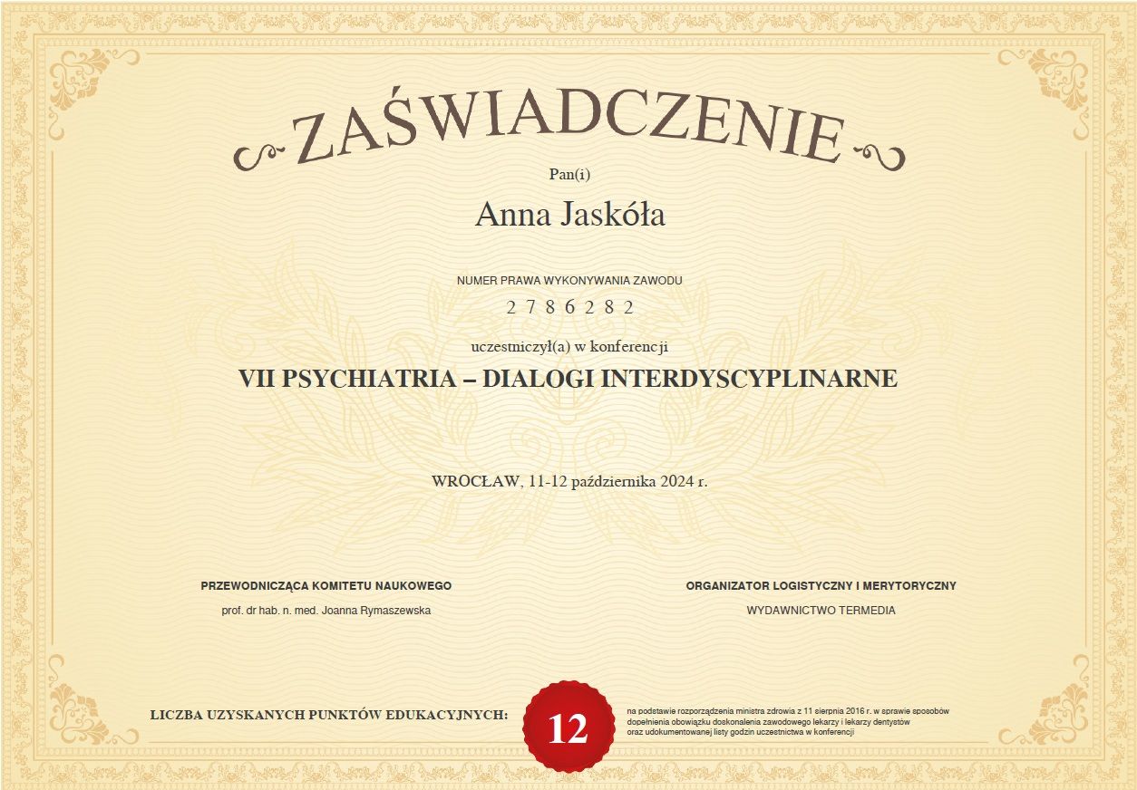 Czy Anna Jaskóła przyjmuje online, bez konieczności pojawiania się w placówce?Tak, Anna Jaskóła oferuje konsultacje online. Wybierz opcję „konsultacja online” przy umawianiu wizyty, a zobaczysz dostępne terminy.