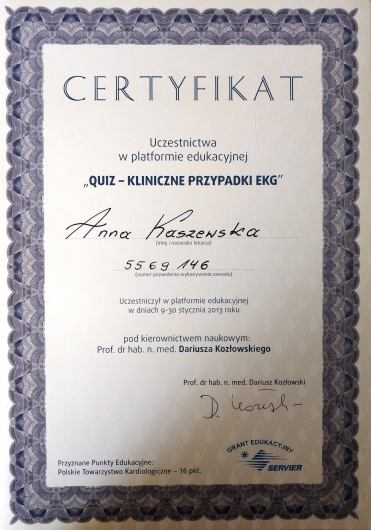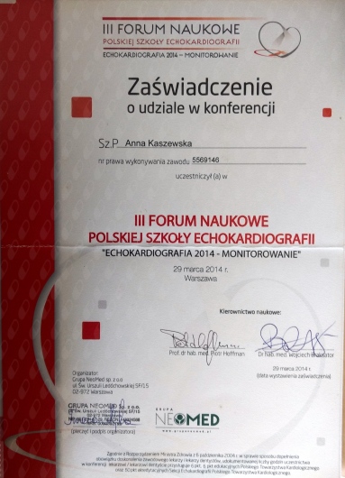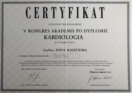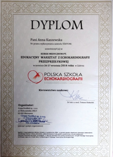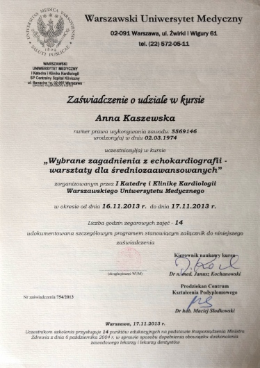 Pani Anna jest swietnym specjalista chorob wewnetrznych,a takze swietnym kardiologiem.Zdiagnozowala wrodzona wade serca,gdzie inni lekarze mieli z tym problem.Oby wiecej bylo takich specjalistow jak Pani Anna Kaszewska
