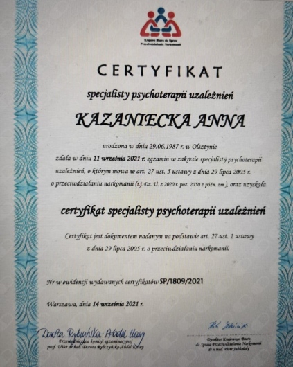 • mgr Anna Kazaniecka- Łuczyńska Specjalista Psychoterapii Uzależnień • konsultacja online •
