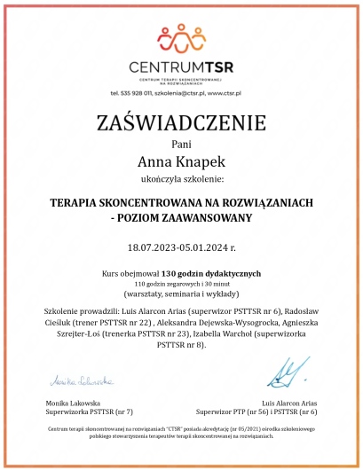 Terapia to proces, który wymaga zaangażowania oraz czasu. Zmiany nie następują natychmiast, lecz stopniowo – zarówno podczas sesji, jak i w codziennym życiu. Bądź gotowy na to, że postępy będą wymagały konsekwentnego wdrażania narzędzi i technik poznawanych w trakcie terapii. Pamiętaj, że każda mała zmiana przybliża Cię do osiągnięcia swoich celów.