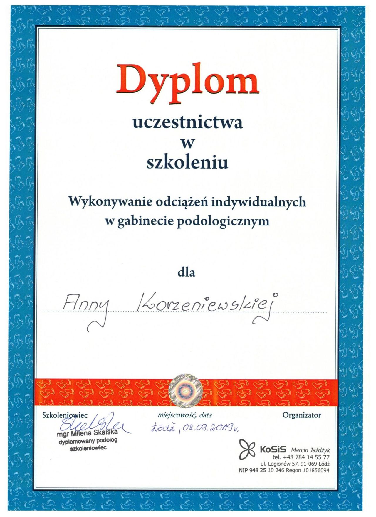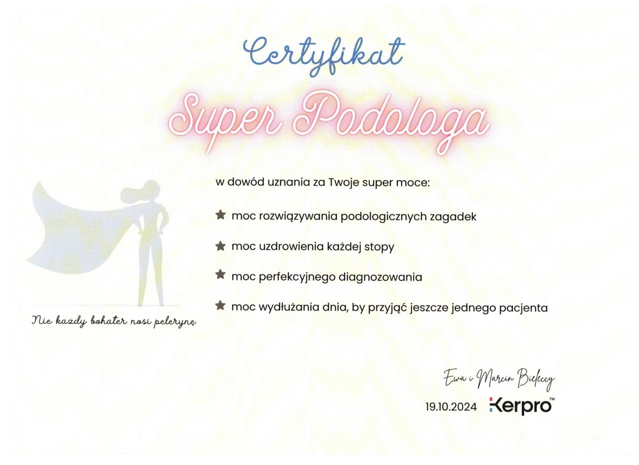 Z pełnym przekonaniem polecam panią Anię – podologa z prawdziwą pasją i ogromną wiedzą. Pedicure podologiczny zawsze wykonany perfekcyjnie, bardzo dokładnie, a efekt utrzymuje się naprawdę długo. Pani Ania proaktywnie zwraca uwagę na kwestie, którymi warto się zająć w przyszłości, m.in. na konieczność noszenia odpowiednich wkładek rehabilitacyjnych.