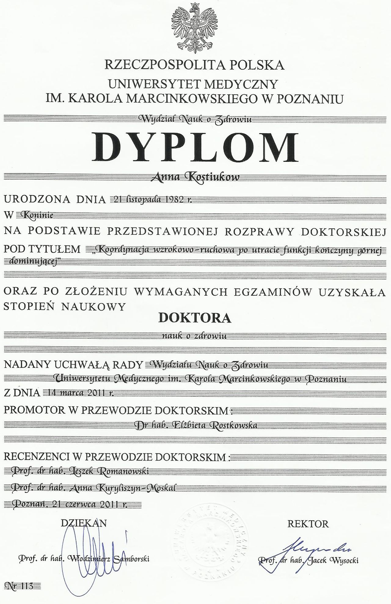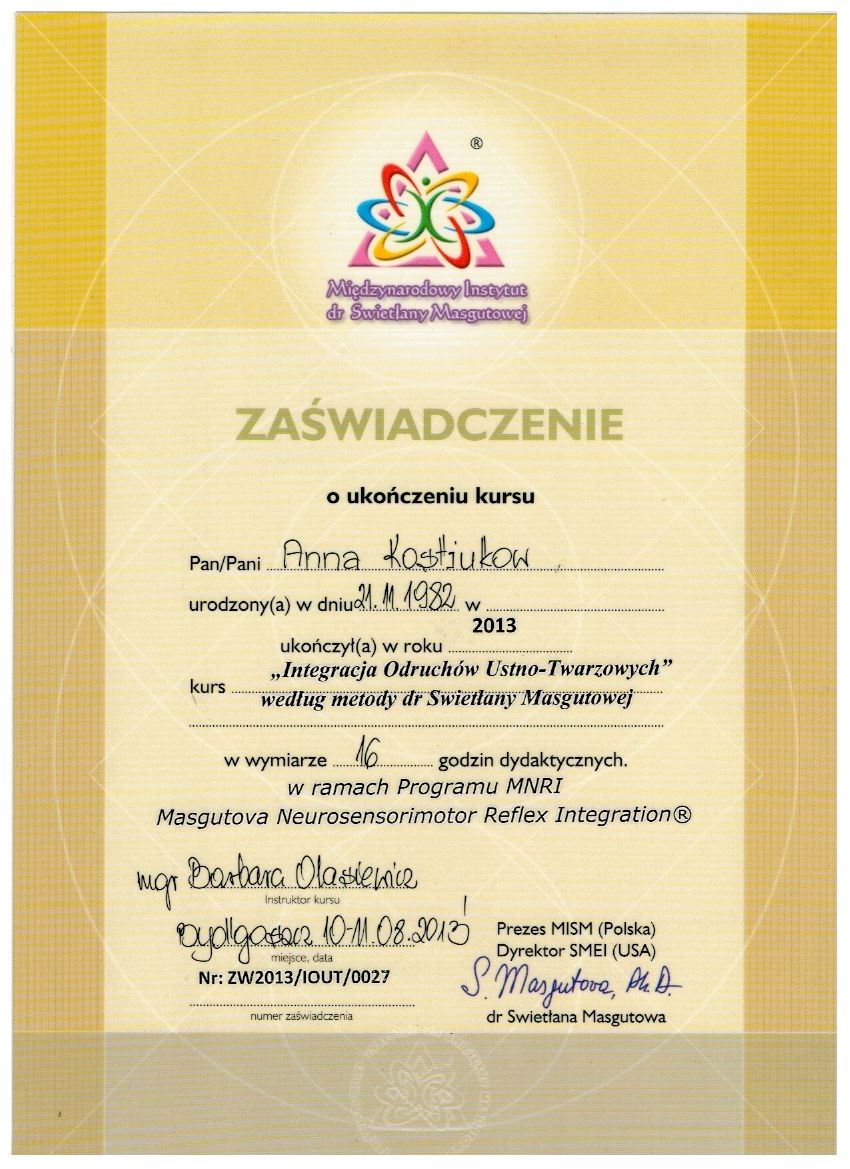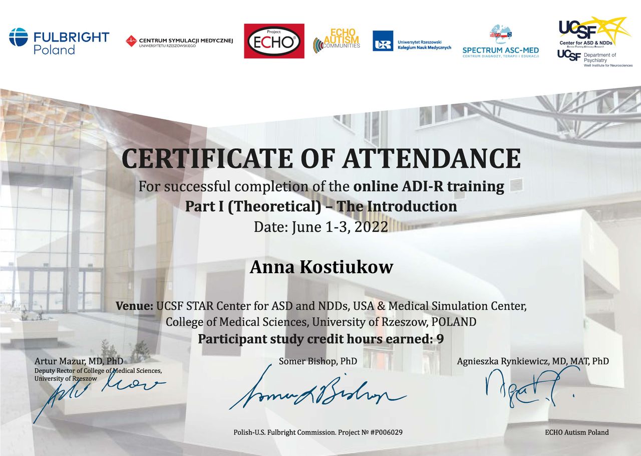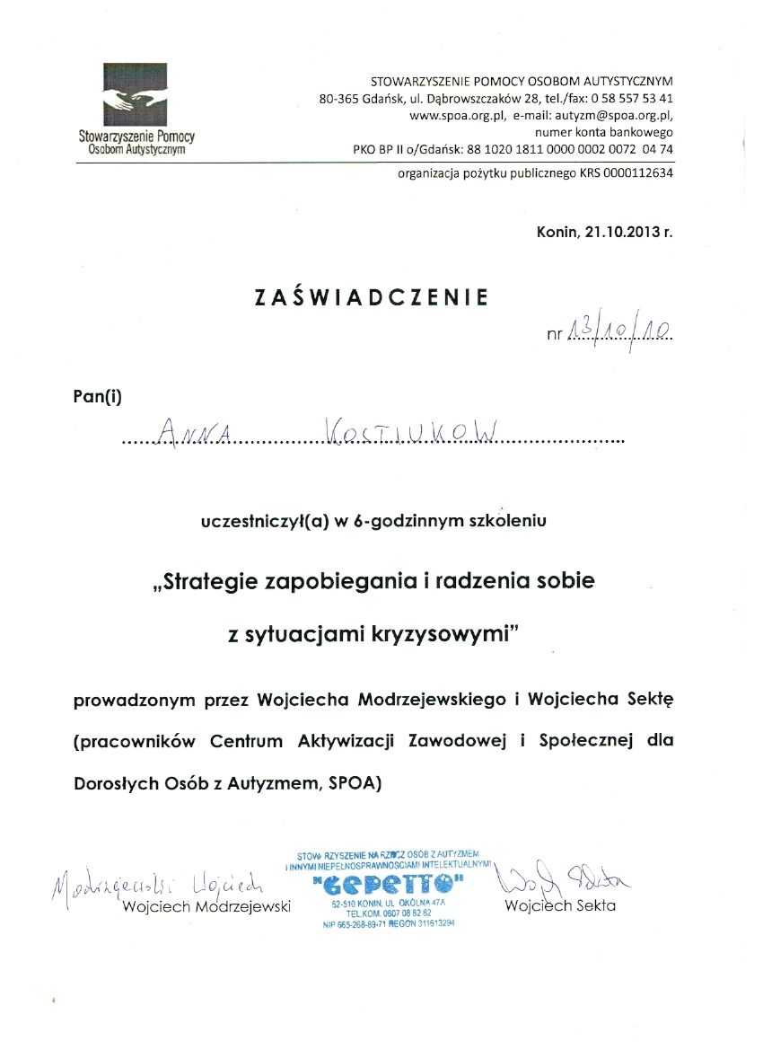 dr Anna Kostiukow- dr nauk o zdrowiu, fizjoterapeutka, managereka zoz, managerka oświaty, absolwentka zdrowia publicznego- ze szczególnym uwzględnieniem promocji zdrowia w autyzmie, doradczyni zawodowa osób z niepełnosprawnościami.
