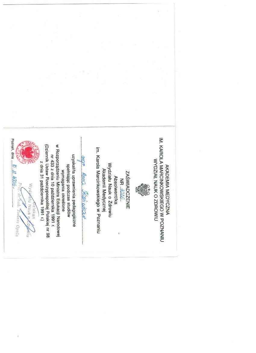 Kierowniczka studiów podyplomowych na Uniwersytecie Medycznym w Poznaniu „KOMPLEKSOWY SYSTEM WSPARCIA ROZWOJU DZIECKA ZE SPEKTRUM AUTYZMU“, oraz „EDUKACJA I REHABILITACJA OSÓB Z NIEPEŁNOSPRAWNOŚCIĄ INTELEKTUALNĄ“
