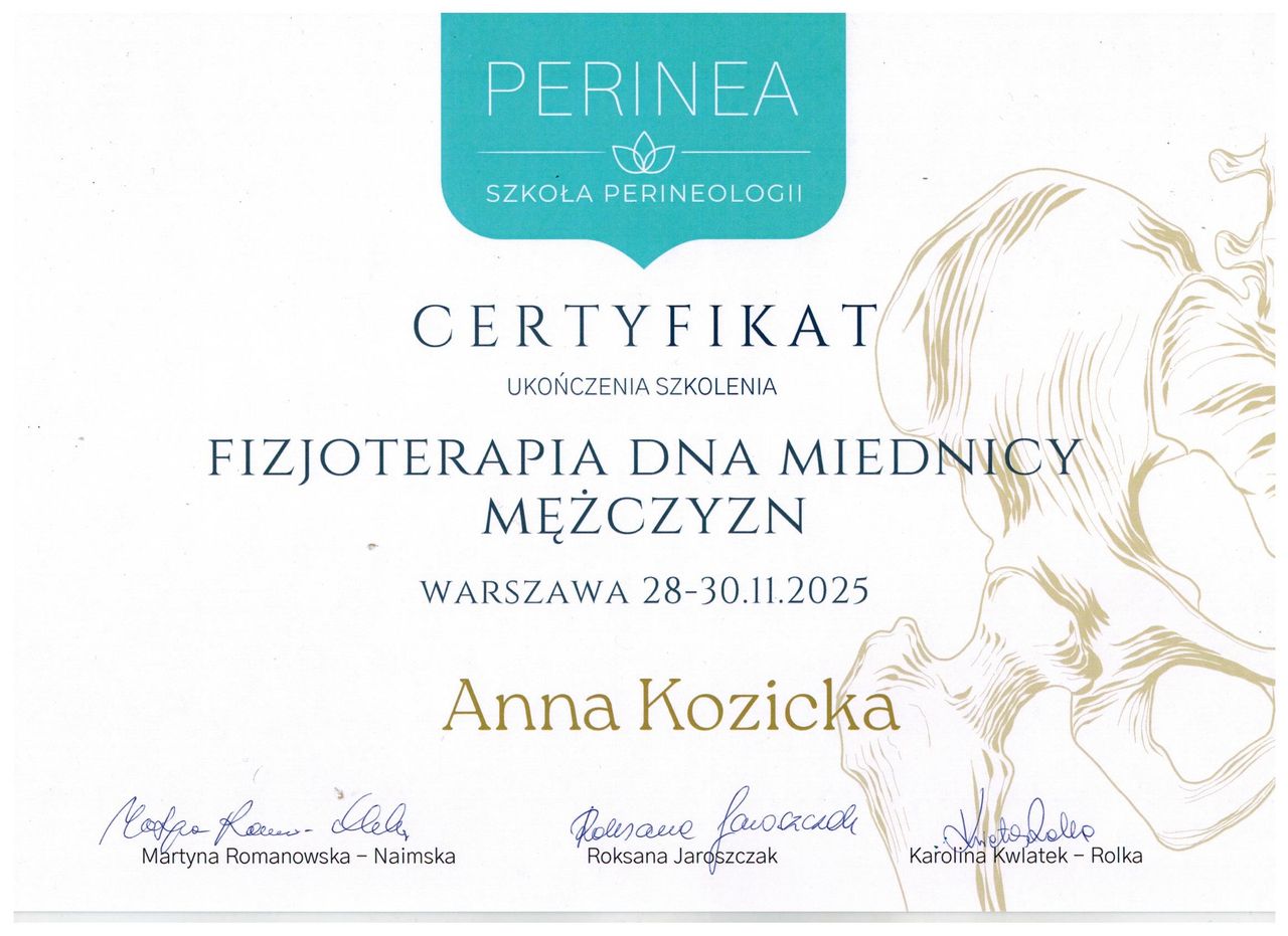 Jaki jest zakres porad oferowanych przez Anna Kozicka?Anna Kozicka to fizjoterapeuta. Na podstawie swojego doświadczenia i wykształcenia Anna Kozicka oferuje usługi takie jak: Konsultacja uroginekologiczna (pierwsza wizyta), Konsultacja uroginekologiczna kolejna wizyta, fizjoterapia urologiczna, konsultacja fizjoterapeutyczna.