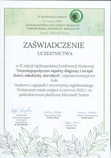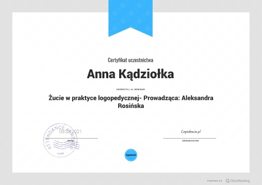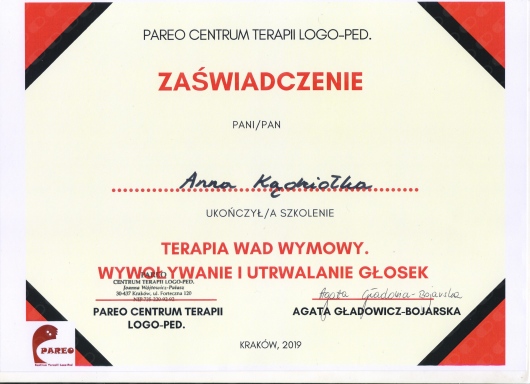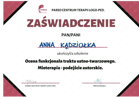 Jestem bardzo zadowolona z wizyt u pani Ani. Jestem po operacji dwuszczękowej ( progenia + asymetria żuchwy). Dzięki ćwiczeniom logopedycznym od pani Ani poprawiła mi się nie tylko dykcja ale również praca mięśni całej twarzy, w tym również uśmiech jest ładniejszy :).