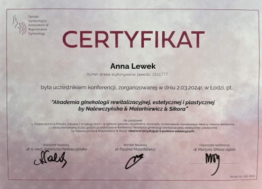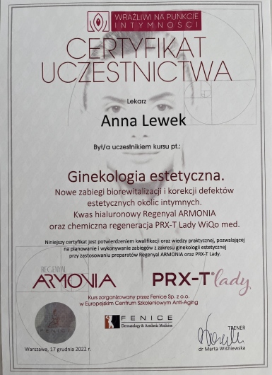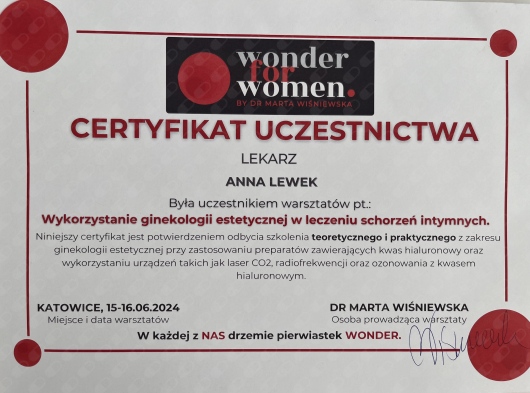Jaki jest zakres porad oferowanych przez Anna Lewek?Anna Lewek to ginekolog, lekarz wykonujący zabiegi medycyny estetycznej. Na podstawie swojego doświadczenia i wykształcenia Anna Lewek oferuje usługi takie jak: konsultacja ginekologiczna, konsultacja ginekologiczna + USG, usunięcie wkładki domacicznej, założenie wkładki domacicznej + koszt wkładki, założenie wkładki wewnątrzmacicznej od pacjentki, Szczepienie przeciw HPV, konsultacja ginekologiczna + USG + cytologia, Konsultacja ginekologiczna + cytologia LBC + HPV (14), konsultacja ginekologiczna + USG + cytologia LBC, pełen posiew (bakterie tlenowe, beztlenowe, grzyby).
