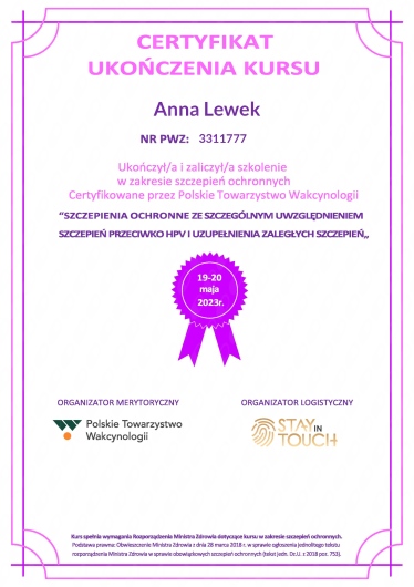 Jak Anna Lewek umawia wizyty?Anna Lewek używa kalendarza ZnanyLekarz, dlatego na stronie widzisz aktualne terminy. Wystarczy, że wybierzesz datę i godzinę, które odpowiadają Ci najbardziej. Umawianie wizyty jest darmowe, a tuż przed terminem wyślemy Ci przypomnienie.