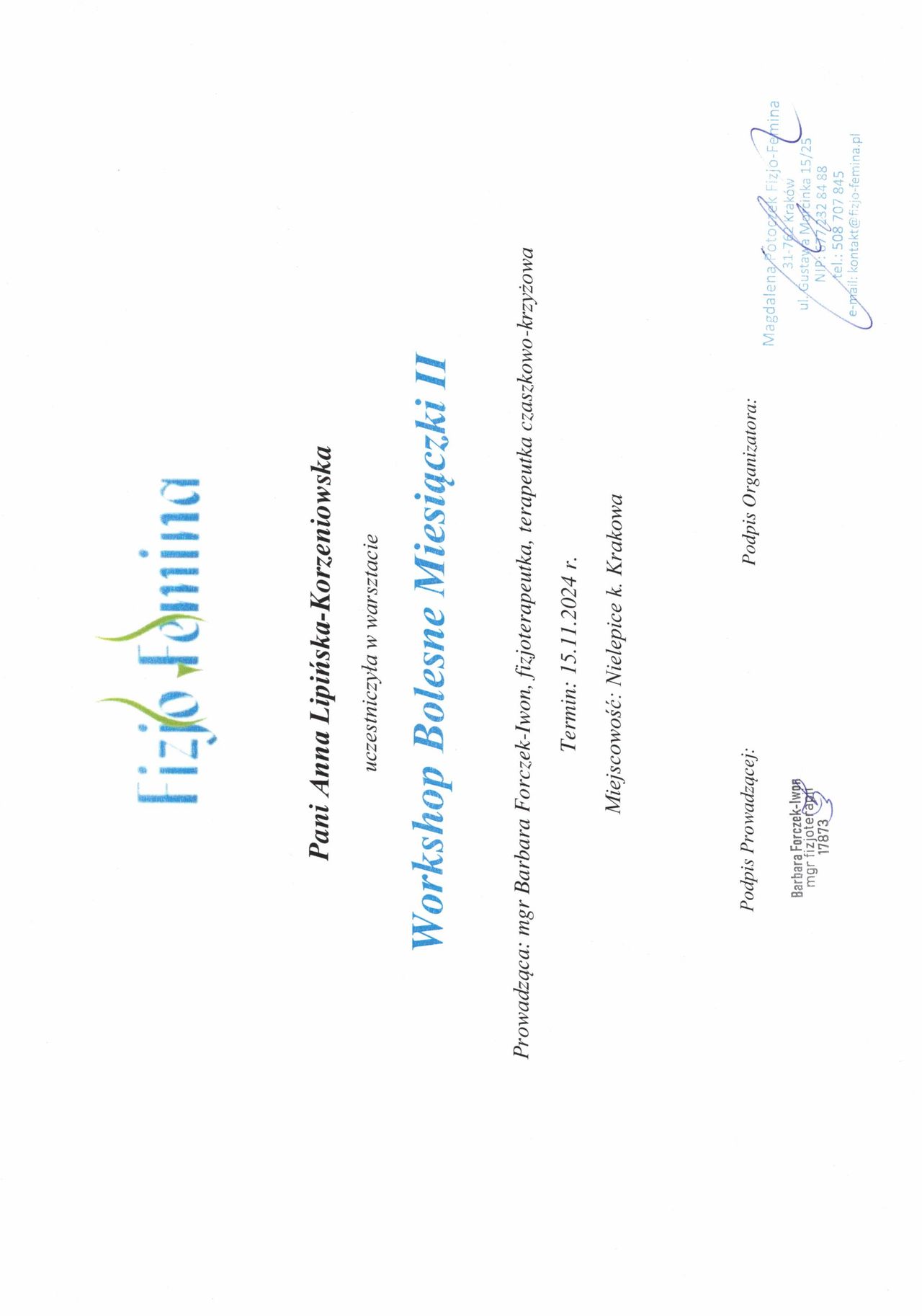 Jaki jest zakres porad oferowanych przez Anna Lipińska-Korzeniowska?Anna Lipińska-Korzeniowska to fizjoterapeuta dziecięcy, fizjoterapeuta. Na podstawie swojego doświadczenia i wykształcenia Anna Lipińska-Korzeniowska oferuje usługi takie jak: Kolejna wizyta 60 min, terapia integracji sensorycznej, Diagnoza zaburzeń integracji sensorycznej z opinią, Rehabilitacja dziecięca - neurologiczna, fizjoterapia uroginekologiczna, Konsultacja fizjoterapeutyczna ( I wizyta, diagnoza + terapia ), Kolejna wizyta 45 min, ćwiczenia korekcyjne.