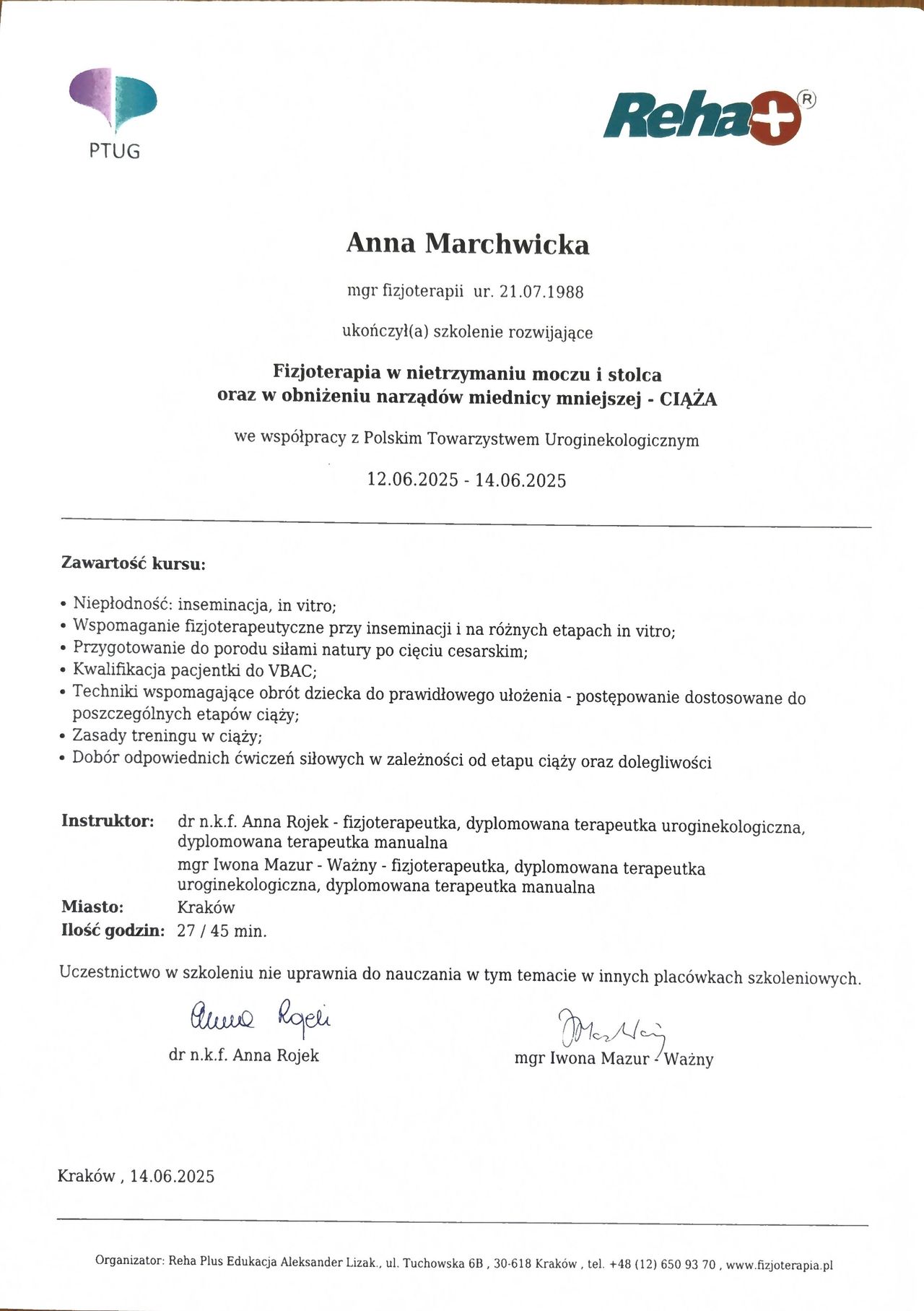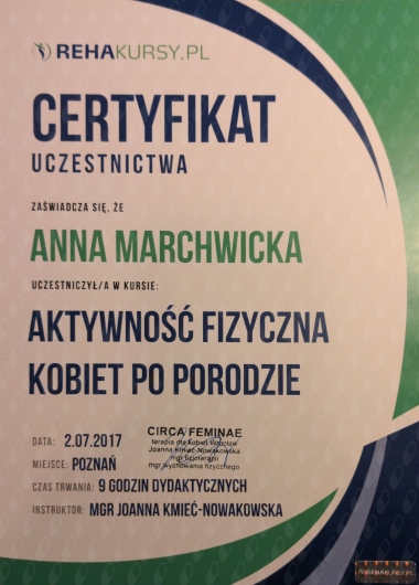 Chodziłam do Pani Ani od początku ciąży w celu przygotowania do porodu. Jestem bardzo zadowolona. Pani Ania jest profesjonalistką, posiada dużą wiedzę. Dzięki Jej cennym wskazówkom i zaleceniom zachowałam sprawność w okresie ciąży i czuję się przygotowana do porodu. Podczas wizyt panuje miła, swobodna atmosfera. Pani Ania dokładnie omawia zalecenia, odpowiada do każde pytanie. Świetne podejście do pacjenta. Bardzo polecam.