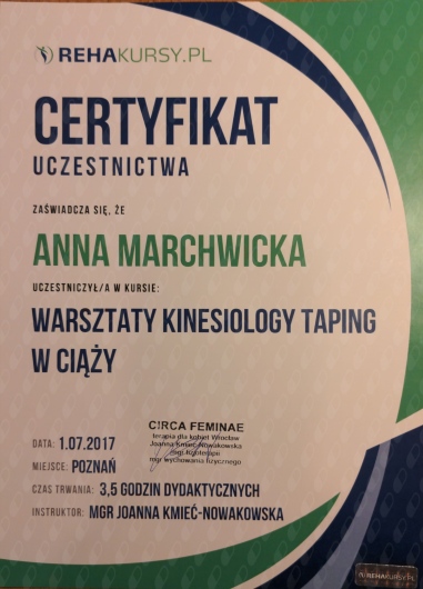 - warsztaty - MTG i wpływ na redukowanie bólów miesiączkowych, kinesiology taping w ciąży, masaż głęboki, przepona oddechowa - znaczenie i terapia
