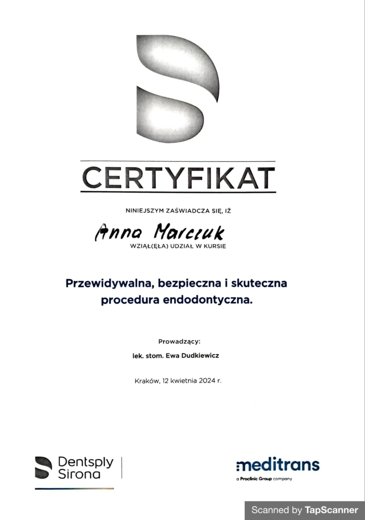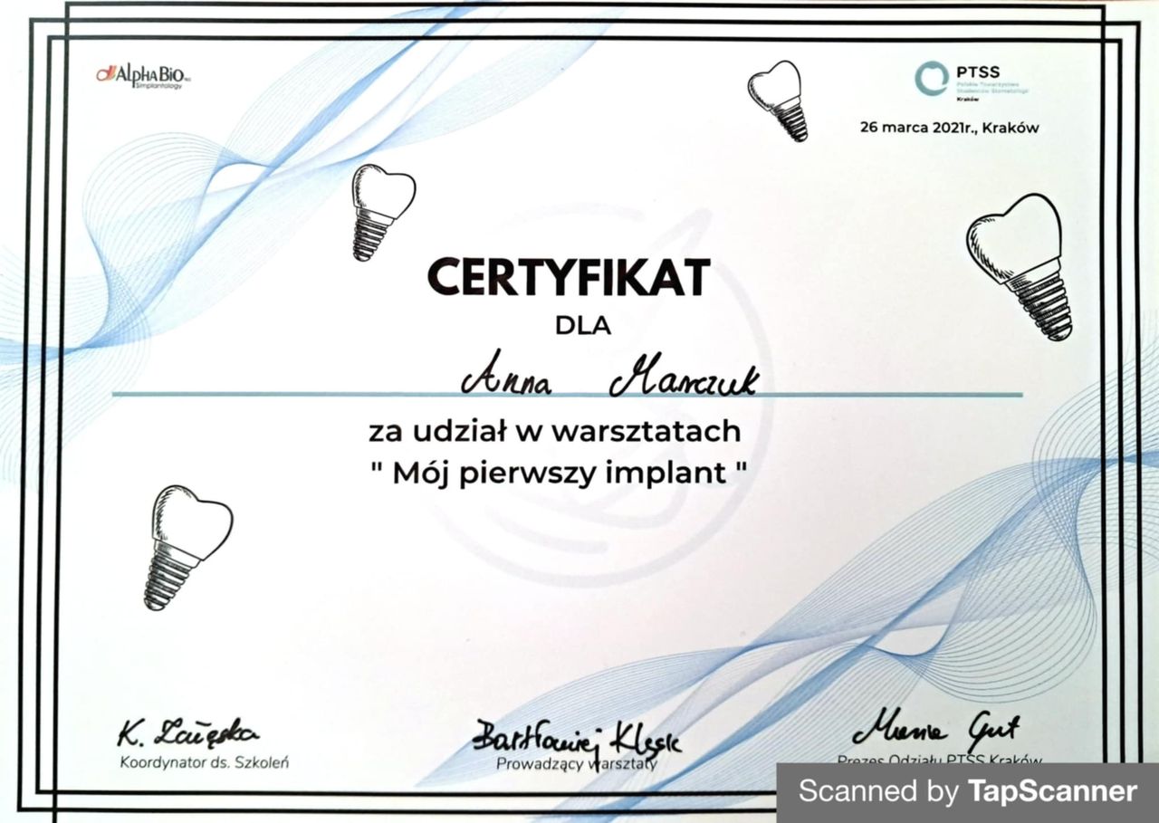 Stomatolog Anna Marczuk wie o czym mówi, ale też słucha pacjenta jest uważna na ewentualne sugestie i rzeczowo wyjaśnia dlaczego jakaś ścieżka postewania w tym przypadku jest odpowiednia lub nie .. jestem bardzo zadowolony z wizyty i zbudowany do dalszego działania.