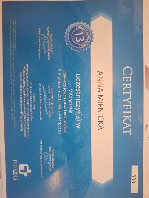 Anna Mienicka regularnie uczestniczy w szkoleniach i wykładach, aby stale podnosić swoje kwalifikacje i dostarczać pacjentom najlepszą możliwą opiekę. Jeśli szukasz specjalistki w leczeniu stóp cukrzycowych i ran w Warszawie, Anna Mienicka z Venamed zapewni profesjonalną i troskliwą opiekę.