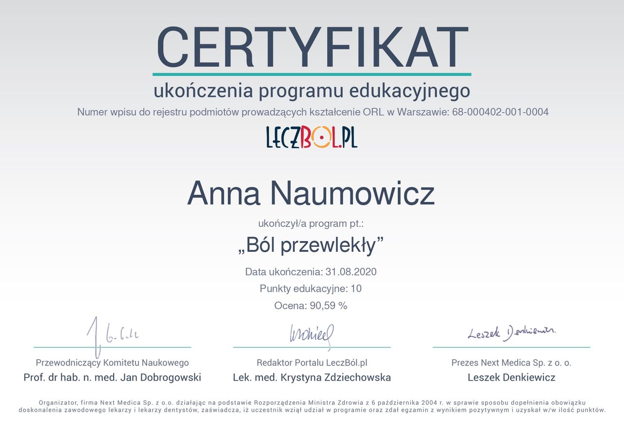 Jesteś już po wizycie u lek. Anna Naumowicz? Daj znać, co myślisz. Inni pacjenci będą wdzięczni za pomoc w wyborze najlepszego specjalisty.