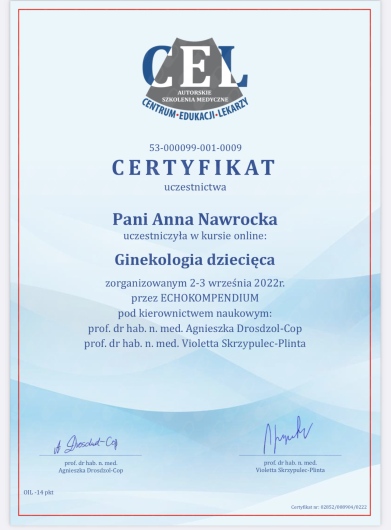Pani Doktor Anna Nawrocka to prawdziwa profesjonalistka w każdym calu. Od pierwszej chwili, gdy weszłam na jej konsultację, poczułam się zaopiekowana i zrozumiana. Byłam początkowo sceptycznie nastawiona do wykonania biopsji, a moje liczne pytania i obawy tworzyły prawdziwy chaos. Mimo to Pani Doktor Nawrocka z niezwykłą cierpliwością i empatią krok po kroku wyjaśniła mi każdy etap kolposkopii i samego pobrania wycinków, rozwiewając wszystkie wątpliwości.Jej rzetelność i dokładność dawały mi poczucie bezpieczeństwa – odpowiadała spokojnie na każde pytanie i tłumaczyła medyczne terminy w prosty sposób. Dzięki niej przestałam się bać zabiegu i wiedziałam, że jestem w najlepszych rękach.Chciałabym również serdecznie podziękować Również Asystetce za jej ciepło i uśmiech