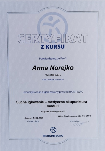 Anna Norejko: co mówią pacjenci?88 osób dodało swoją opinię. Anna Norejko ma średnią ocen 5 (na 5 gwiazdek).