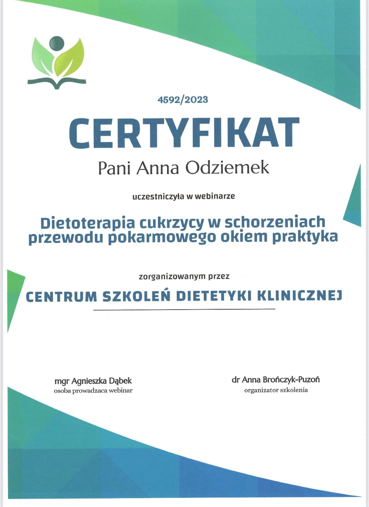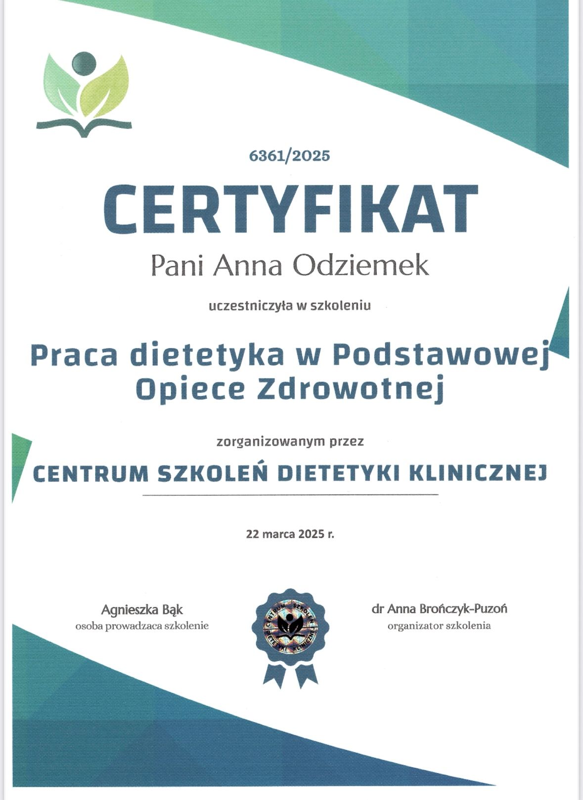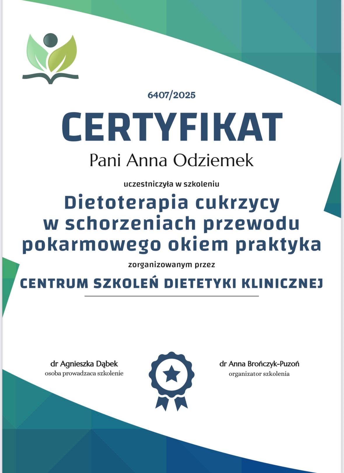 Anna Odziemek - Dietetyk kliniczny, edukator diabetologiczny