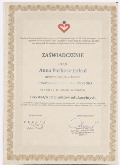 Szukasz zaufanego okulisty we Wrocławiu? Nazywam się Anna Parkosz-Jędral i jako specjalistka okulistyki przyjmuję w Braniborska Clinic, gdzie pomagam dorosłym i dzieciom od 10. roku życia w diagnostyce oraz leczeniu chorób oczu.