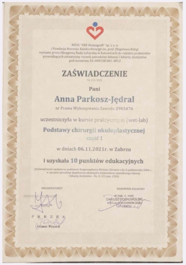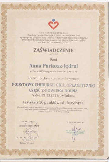 Wykonuję również drobne w obrębie powiek – usuwam gradówki, kaszaki itp. łącząc precyzję z dbałością o estetykę i komfort pacjenta.