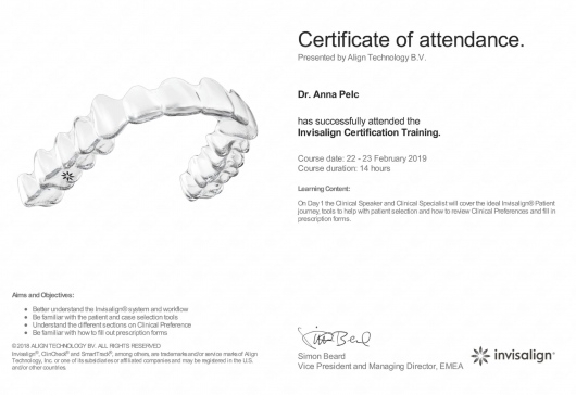 Ukończyłam Uniwersytet Medyczny we Wrocławiu oraz jestem Certyfikowanym lekarzem systemu Invisalign. Pracuję również jako nauczyciel akademicki w Zakładzie Wad Rozwojowych Twarzy Katedry Ortopedii Szczękowej i Ortodoncji na Uniwersytecie Medycznym we Wrocławiu.