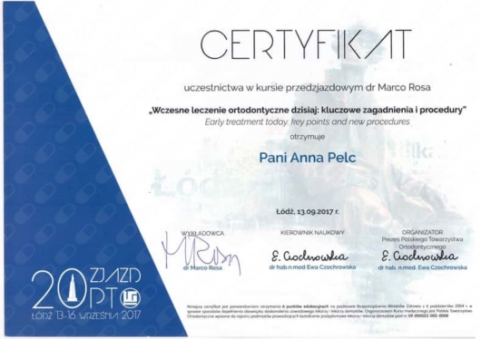 Jaki jest zakres porad oferowanych przez Anna Pelc?Anna Pelc to ortodonta. Na podstawie swojego doświadczenia i wykształcenia Anna Pelc oferuje usługi takie jak: aparat ortodontyczny Clear Aligner, aparat samoligaturujący Damon, aparaty stałe estetyczne, aparaty przezroczyste, aparaty ruchome, konsultacja ortodontyczna, plan leczenia ortodontycznego, wizyta ortodontyczna na dwa łuki, zdjęcie retainera.