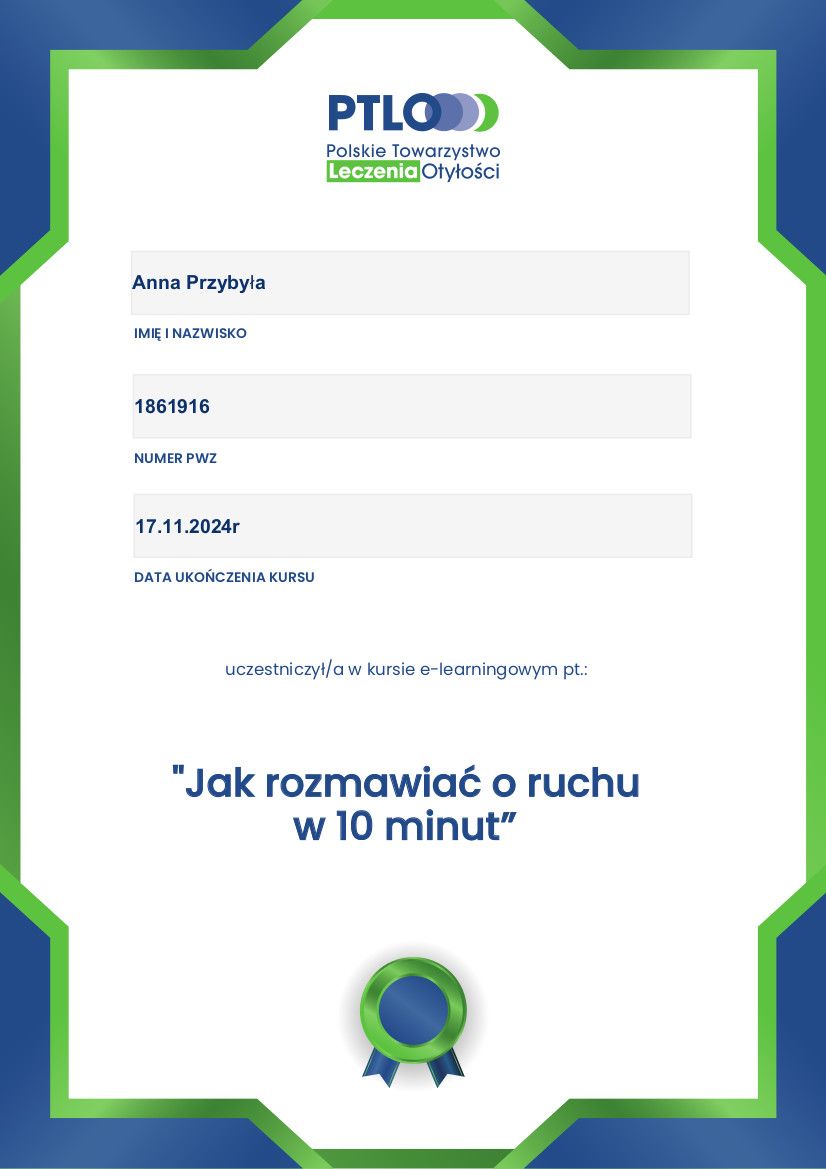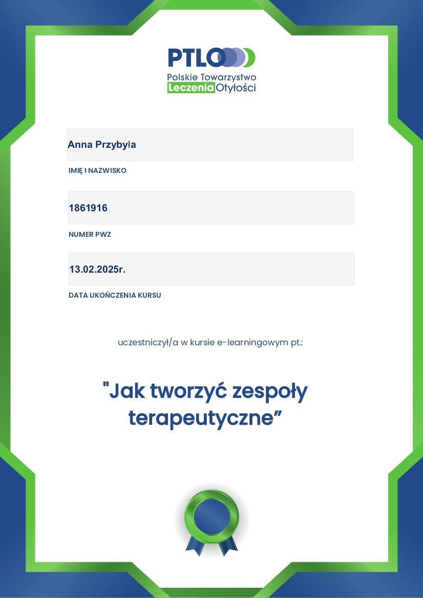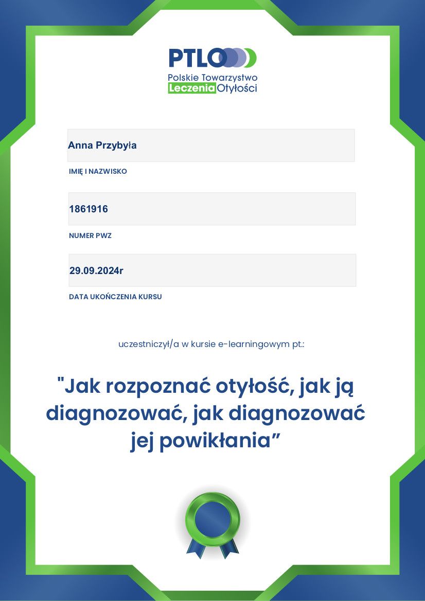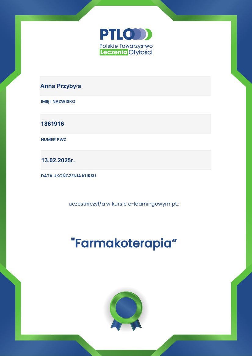 Jestem członkiem Towarzystwa Internistów Polskich i członkiem Polskiego Towarzystwa Leczenia Otyłości. Nieustannie pogłębiam swoją wiedzę uczestnicząc w licznych zjazdach i sympozjach naukowych.