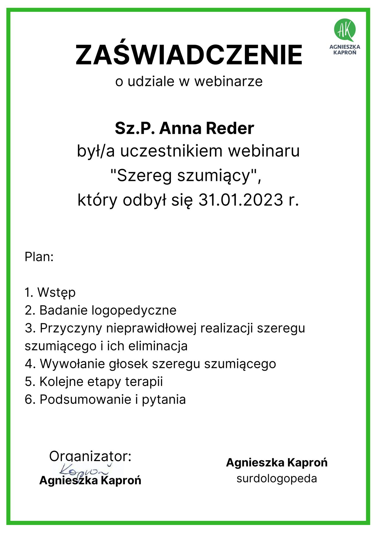 Czy Anna Reder przyjmuje online, bez konieczności pojawiania się w placówce?Nie, w tym momencie Anna Reder nie oferuje konsultacji online.