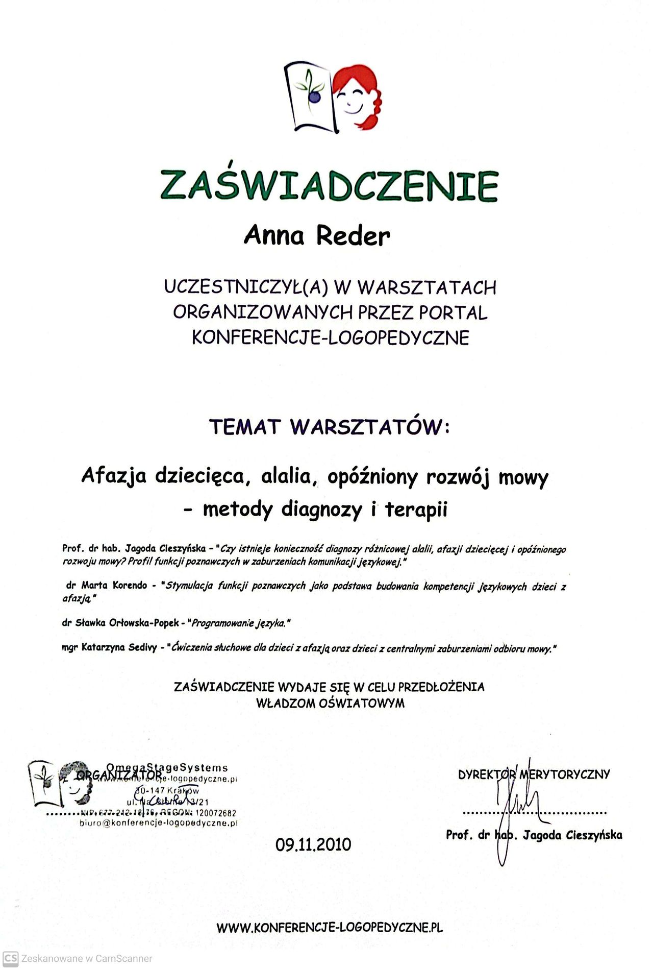 Jak Anna Reder umawia wizyty?Anna Reder używa kalendarza ZnanyLekarz, dlatego na stronie widzisz aktualne terminy. Wystarczy, że wybierzesz datę i godzinę, które odpowiadają Ci najbardziej. Umawianie wizyty jest darmowe, a tuż przed terminem wyślemy Ci przypomnienie.