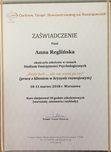 Odbyłam już niejedną wizytę i jak najbardziej polecam!• Anna Reglińska • Psychoterapia •