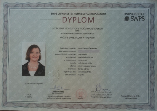 Jutro moja ostatnia sesja Psychoterapii. Jadę pożegnać się i podziękować. Jestem niezmiernie wdzięczna Pani Ani za pomoc. Przebrnęłyśmy razem przez wiele trudnych tematów, dotarłyśmy do informacji pochowanych w różnych zakamarkach mojego "ja". Z osoby bez chęci do życia stałam się szczęśliwą, pełną energii, planów i radości kobietą. Z całego serca polecam Panią Anię, jest wspaniałą psychoterapeutką, ciepłą, empatyczną osobą. Pani Aniu - baaaardzo dziękuję.