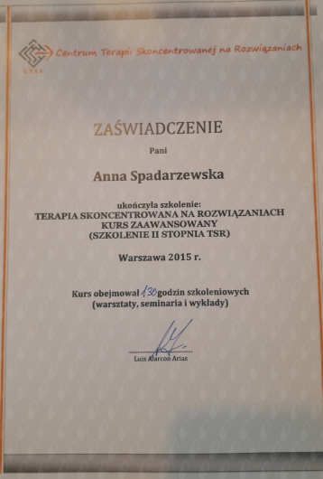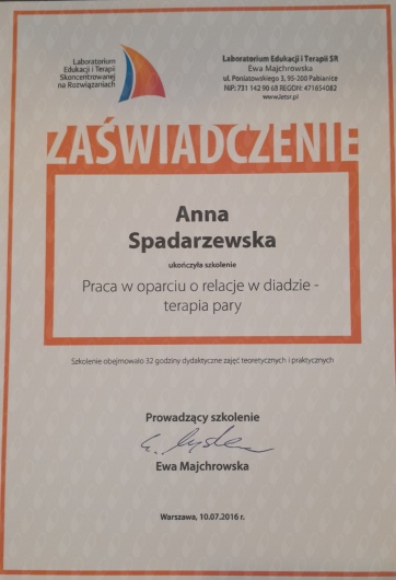 Po 1,5 roku jestem w stanie powiedzieć, że widzę ogromną poprawę w sobie i duża zasługę ma w tym terapia z panią Anną.