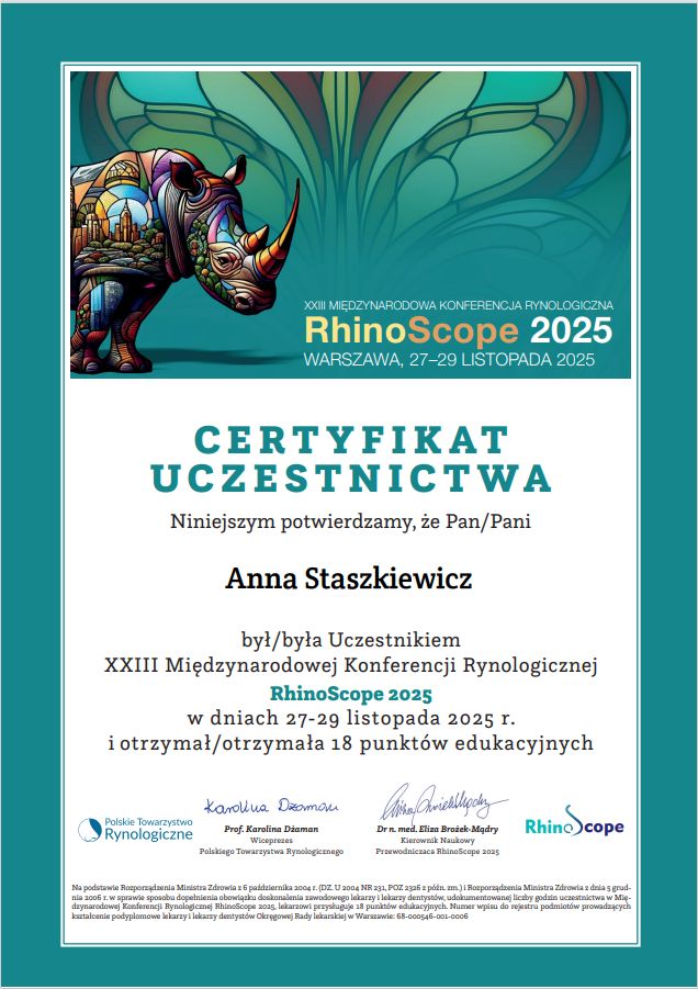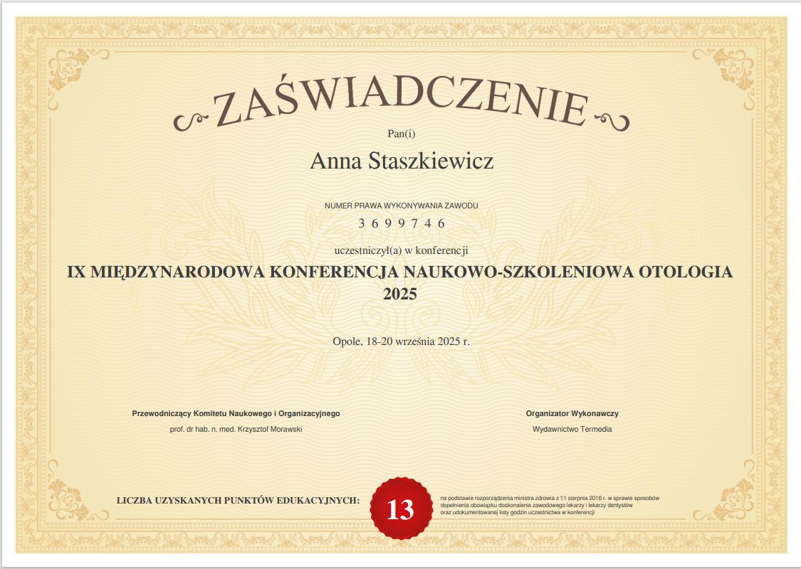 W trakcie specjalizacji (Laryngolog) · Więcej