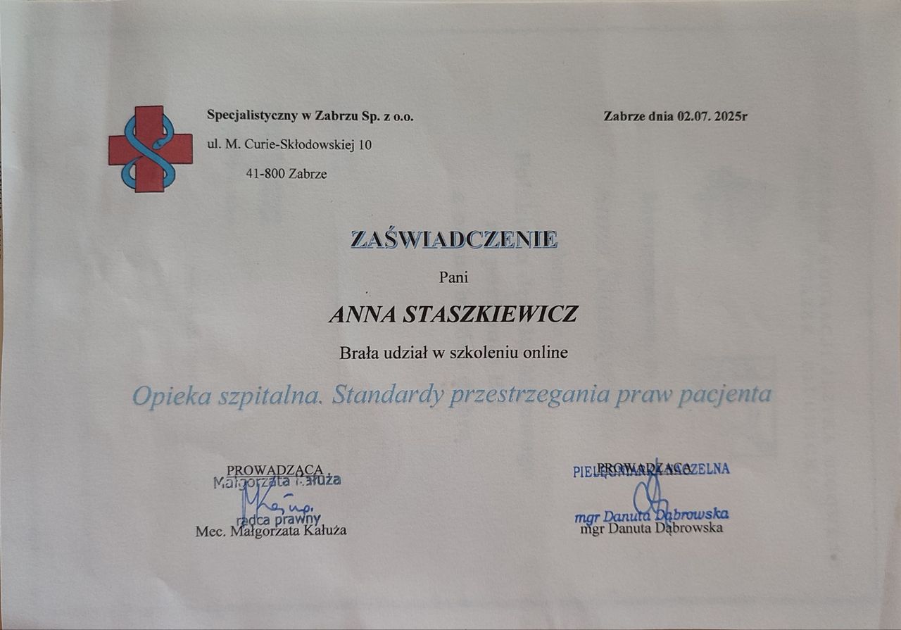Jestem lekarką w trakcie specjalizacji z otorynolaryngologii. Pracuję w Oddziale Klinicznym Otorynolaryngologii i Onkologii Laryngologicznej w Zabrzu. Zajmuję się leczeniem zachowawczym i chirurgicznym chorób nosa, zatok przynosowych, gardła, krtani, uszu oraz szyi.