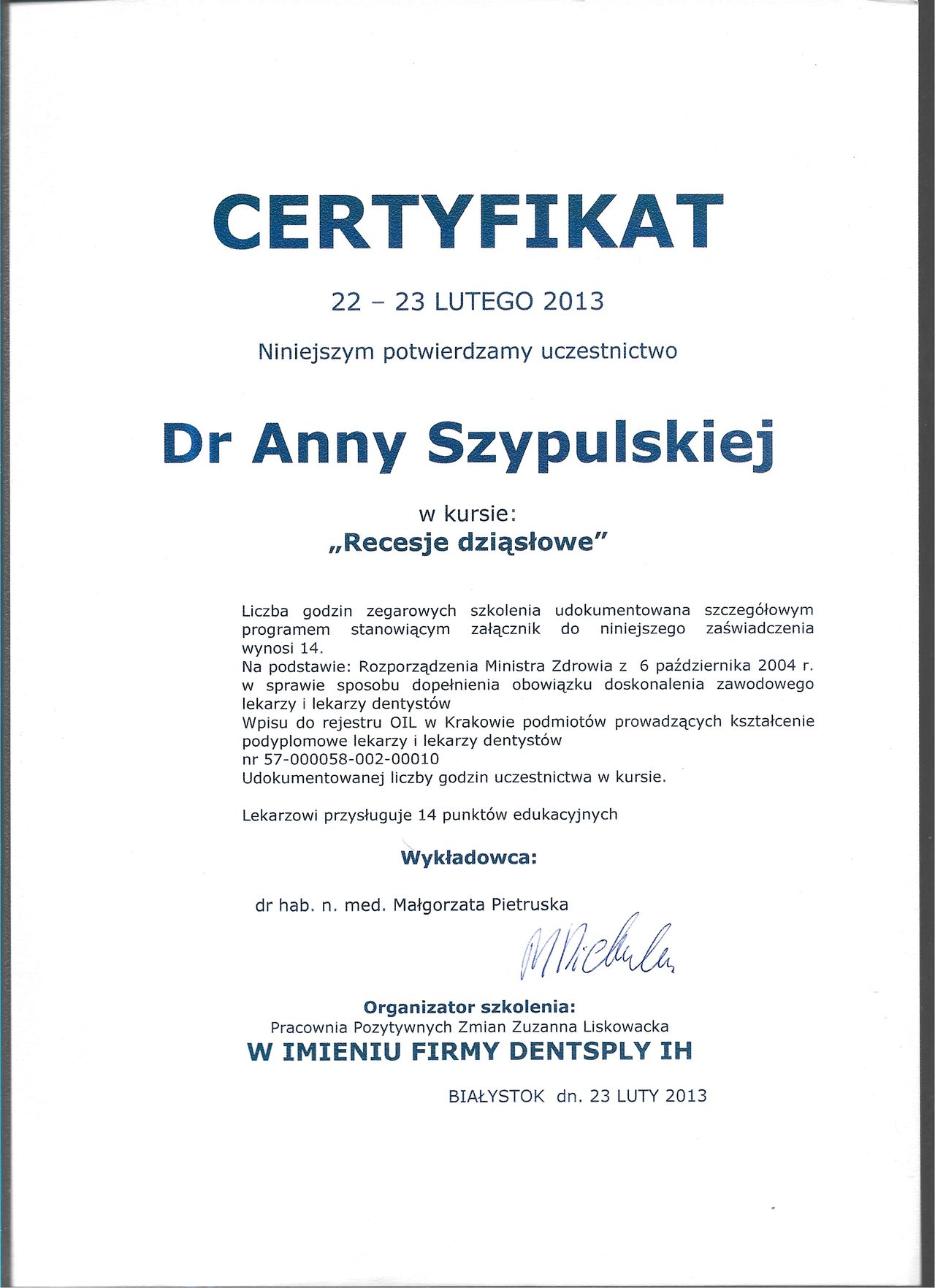 lek. dent. Anna Szypulska