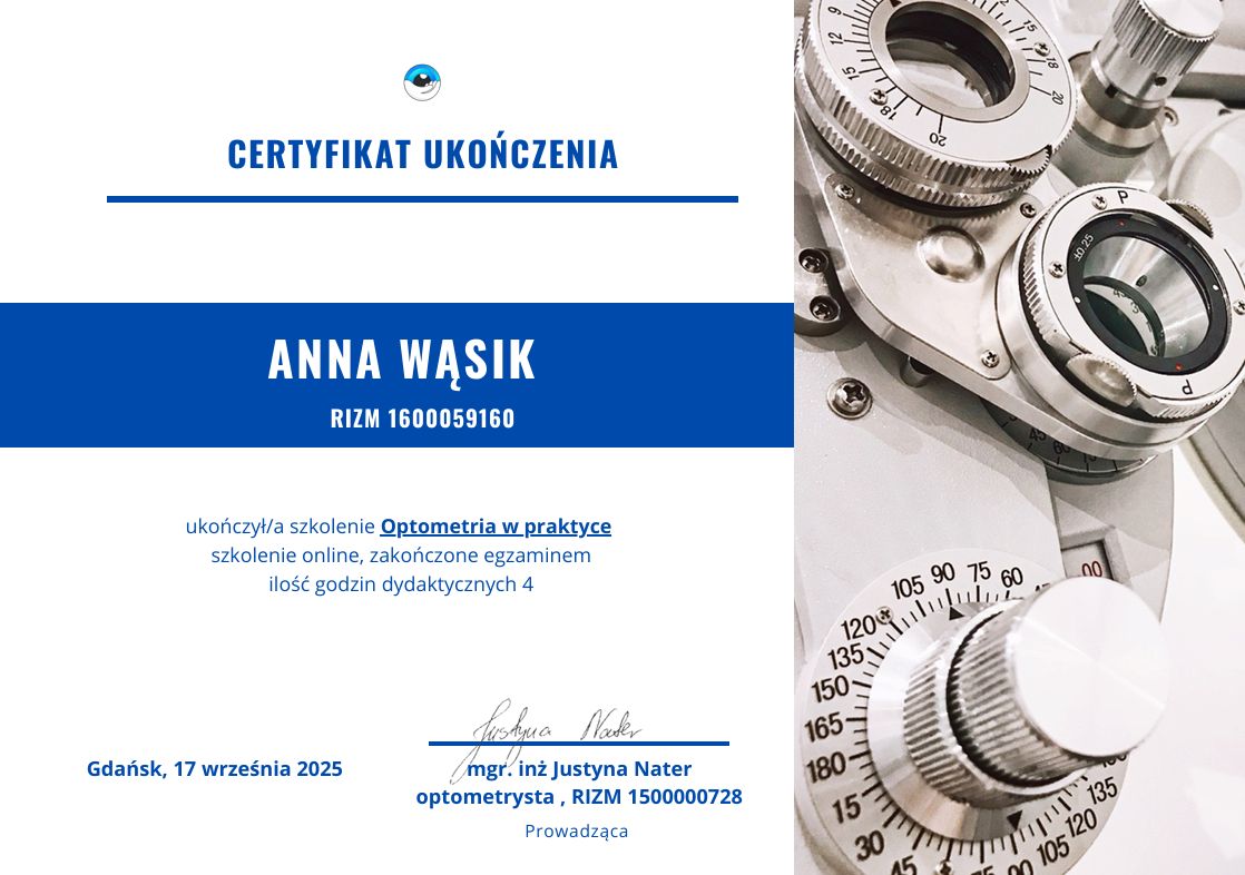 Bardzo polecam wizytę, badanie zostało przeprowadzone dokładnie i wszystko było jasno wyjaśnione. Pani optometrystka jest bardzo profesjonalna i pomocna. Byłam świetnie pokierowana przy doborze odpowiednich okularów.