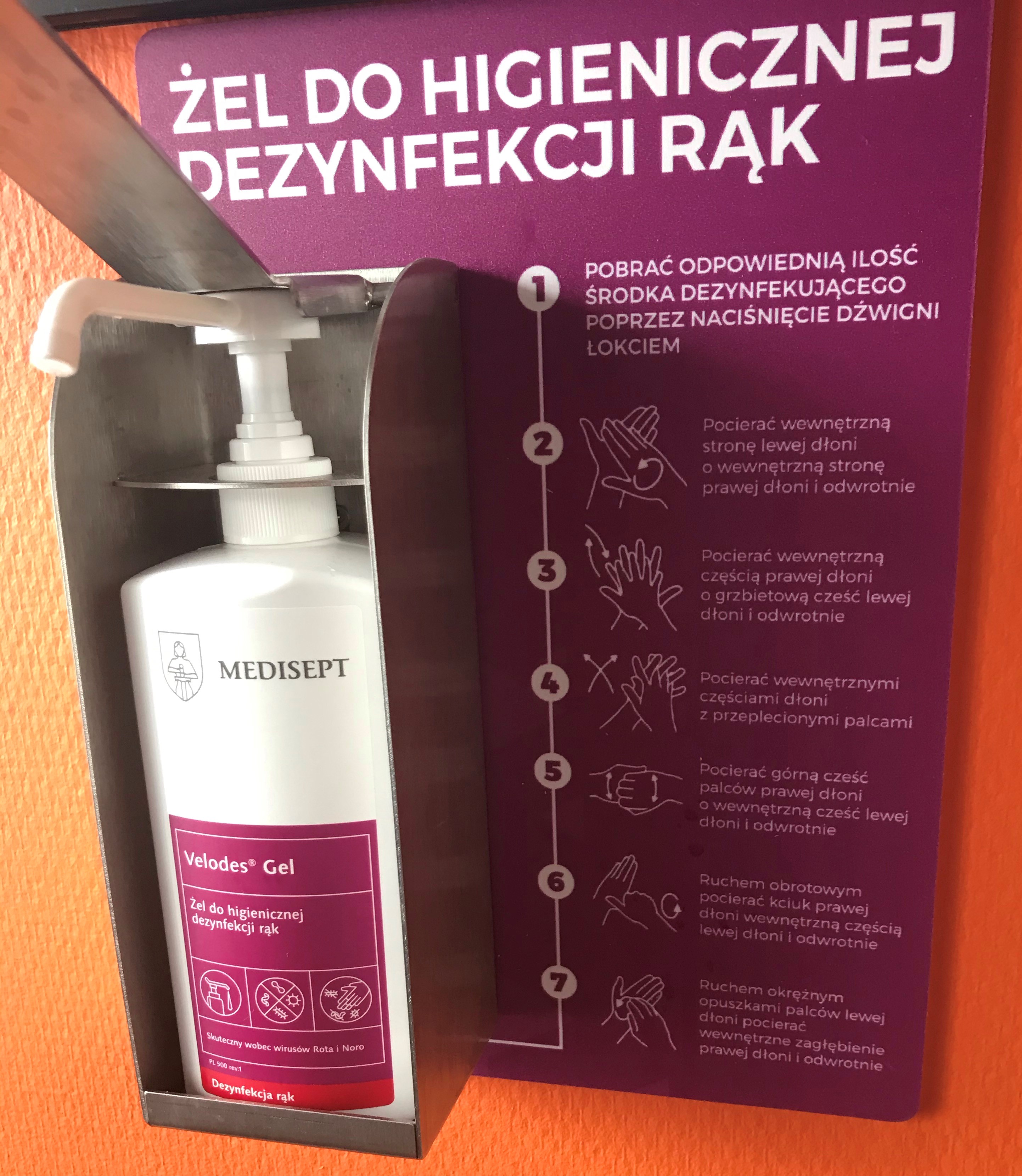 Przy wejściu i przed wyjściem z budynku przychodni zdezynfekuj ręce.