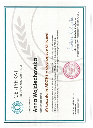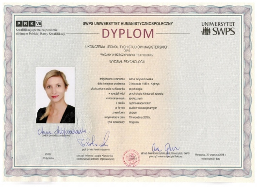 Obecnie realizuję Kurs Zaawansowany Psychoterapii Systemowej Indywidualnej i Rodzinnej w Wielkopolskim Towarzystwie Terapii Systemowej. Studiuję Seksuologię na Warszawskim Uniwersytecie Medycznym.