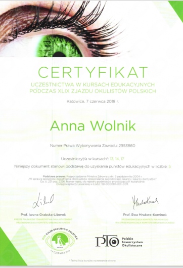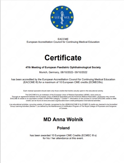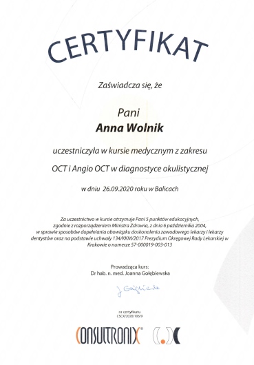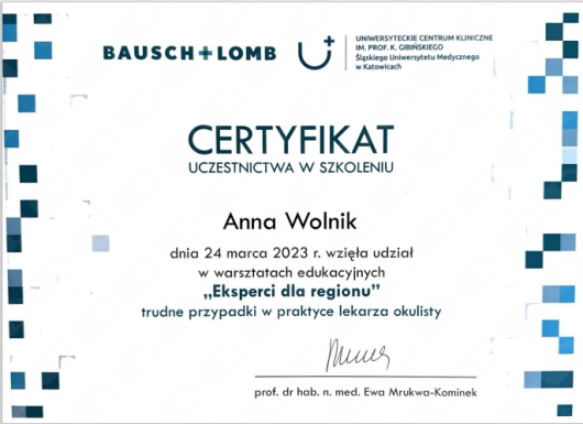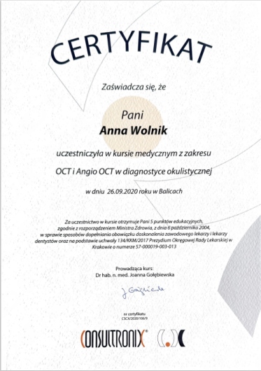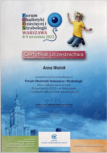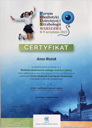 Z całego serca polecam Panią doktor. Wcześniejszy okulista do którego jeździliśmy nie widział zapalenia błony naczyniowej w oku córki, Pani doktor zwolnił zdiagnozowała córkę i doprowadziła do wygaszenia się stanu zapalnego w oku córki. Atmosfera w gabinecie zawsze jest bardzo przyjazna, Pani doktor ma świetne podejście do małego pacjenta jak i do rodzica, wszystko szczegółowo tłumaczy i poświęca tyle czasu ile trzeba. Serdecznie polecam.