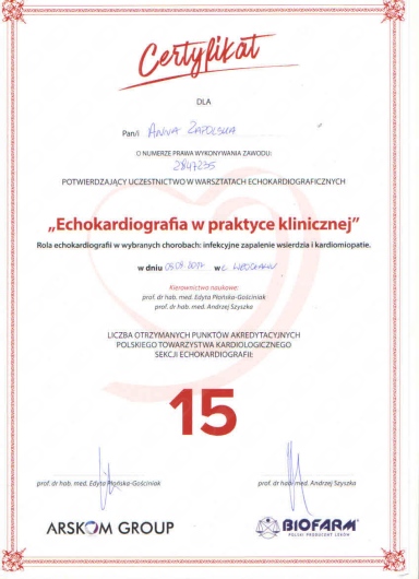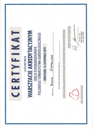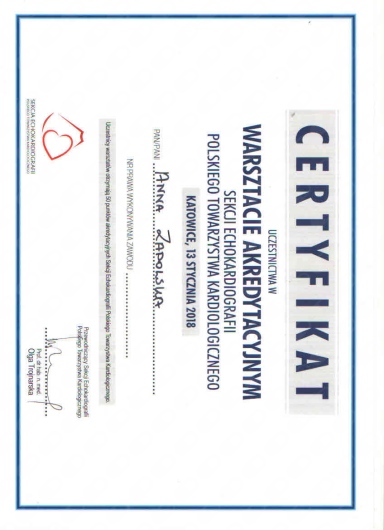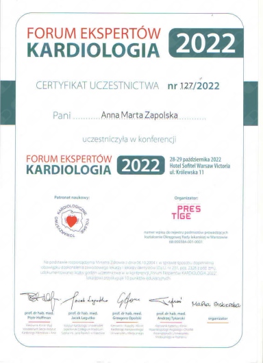 Jestem członkiem Polskiego i Europejskiego Towarzystwa Kardiologicznego.