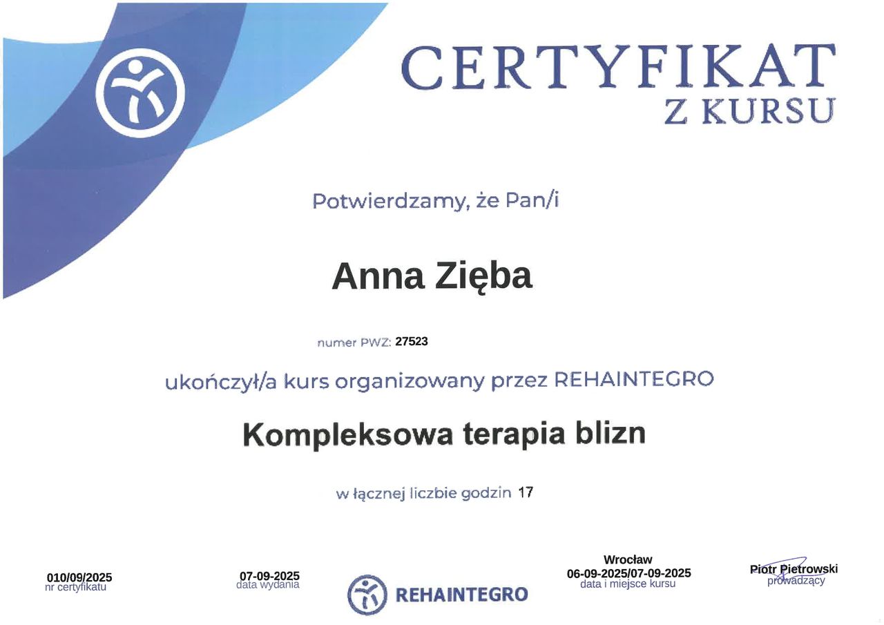• Fizjoterapia i Rehabilitacja Anna Zięba • Terapia blizny •
