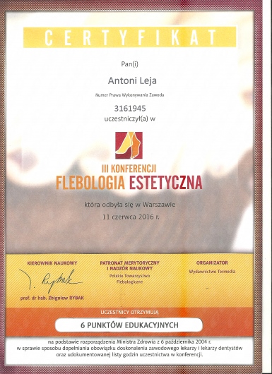 Jestem bardzo zadowolona z zabiegu usunięcia żylaków, wszystko odbyło się bez komplikacji i w wyznaczonym terminie. Polecam lekarza Antoniego