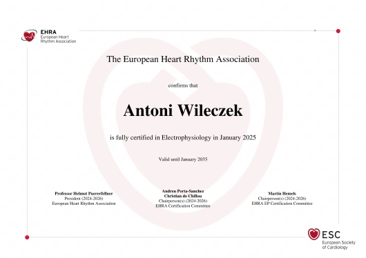 Elektrofizjolog Europejskiego Towarzystwa Rytmu Serca Europejskiego Towarzystwa Kardiologicznego (EHRA ESC)